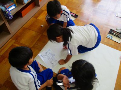 大きく描くのがやや難しいのですが、アイデアを出し合いながら、積極的にがんばっています。