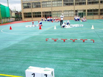 今日の低学年体育では、低学年競技「完成!文教ロック!」の練習をしました。