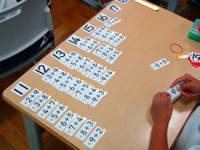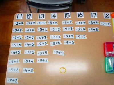 今日は、たし算カードの答えが同じになるものを順序よく並べて、発見したことを出し合いました。