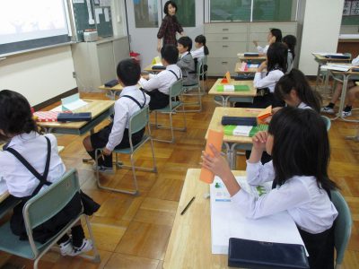 今回は、一つ・二つ・三つ・・・等の数の数え方について、発音を意識したり、文字を書いたりして学習しました。