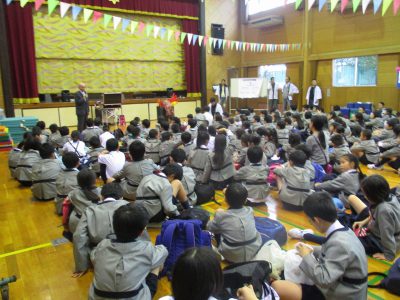 校長先生のお話の後、バルーンアート・ショーを見せてもらいました。