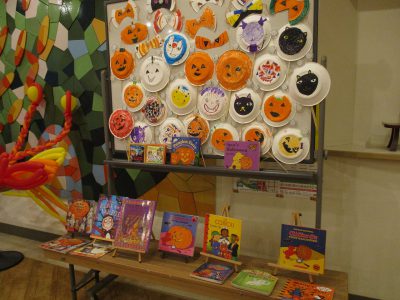 英語の時間に仕上げた低学年のマスクを、一部、掲示しました。
