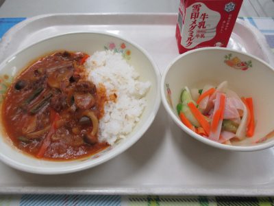今日の献立は「ハヤシライス、大根のサラダ」でした。