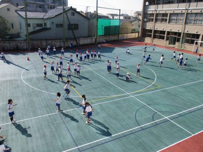 中間休みは……、朝より運動場で遊ぶ人数が増えました!