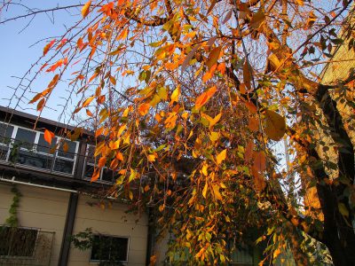学習園のしだれ桜が、美しく染まっていました。
