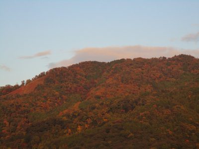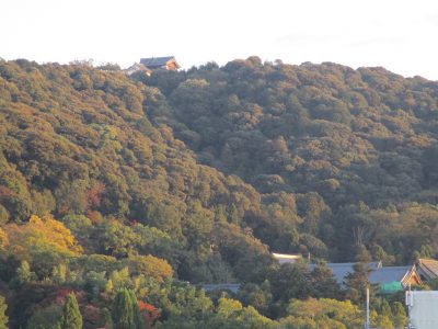 赤々と木々が色づく東山・・・