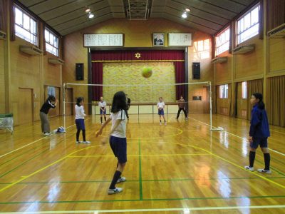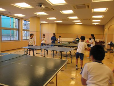 大小の白球を追うバレーメンバーと、卓球メンバー。