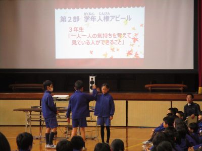 第二部は、各学年の人権アピールを、ロールプレイとともに発信しました。
