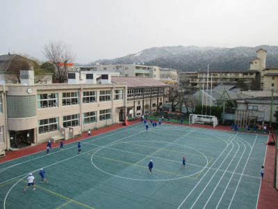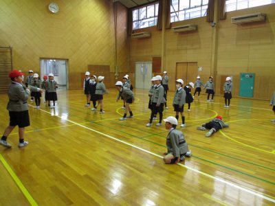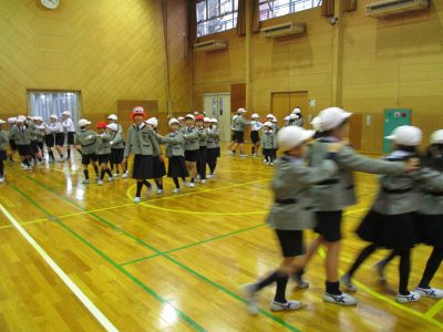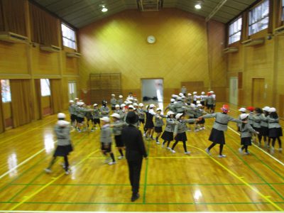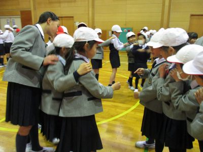 子ども達は、10分前から英語「だるまさんが転んだ」をして、異学年交流をしていました。