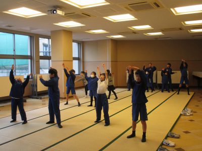 今日は「英語・ラジオ体操第二」ではなく「英語・みんなの体操」を先に実施しました。