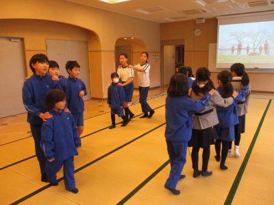 その後、クリスマスの遊びとして、昨日のASEで楽しんだ新じゃんけん遊びと、「サンタさん」ゲームをしました。