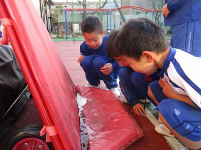 それを見て触ったり、「氷オニしよっか!」と言う文教キッズでした。