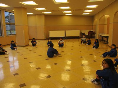 今日は、英語ラジオ体操&ヨガの後に、「だるまさんが転んだ」や「おおかみさん今、何時?」の英語ゲームをして楽しみました。