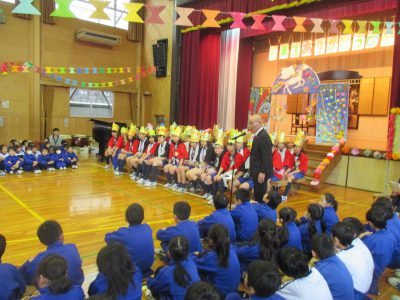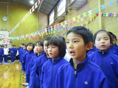 その後、1~5年生の合唱で、6年生に歌をプレゼントしました。