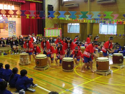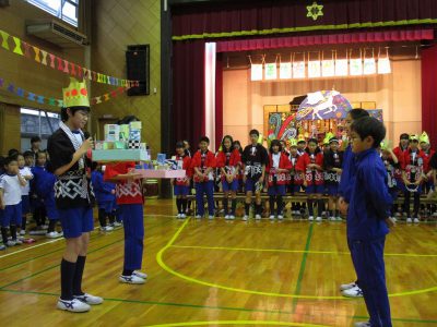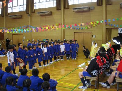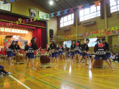 6年生からは、在校生に太鼓演奏のプレゼント!