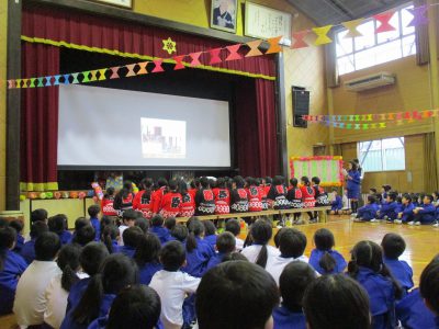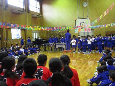 1年生はウッドブロックや鈴なども入れて、2年生は鍵盤ハーモニカでがんばりました。