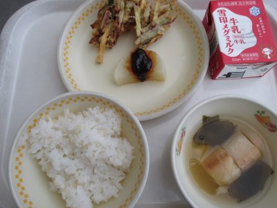 今日の献立は「かきあげ、ふろふき大根、すまし汁」でした。