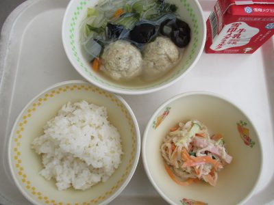 今日の献立は「肉団子と春雨のスープ、切り干し大根のサラダ」でした。