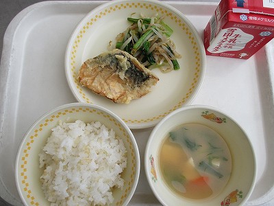 今日の献立は「さばの竜田揚げ、おかかあえ、とうふの味噌汁」でした。