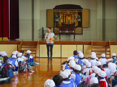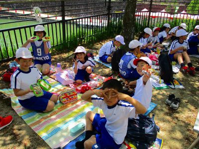 帰校後、校長先生から振り返りのお話を聞いて、ウキウキ遠足を終了しました。