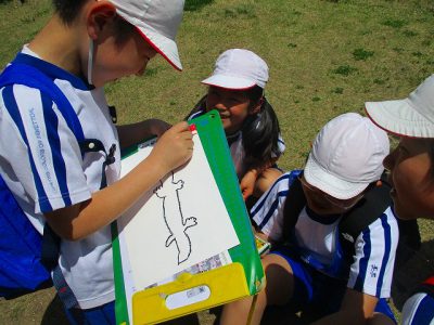 「縦割りれんげ班で、動物の絵を楽しんで描きましょう!」