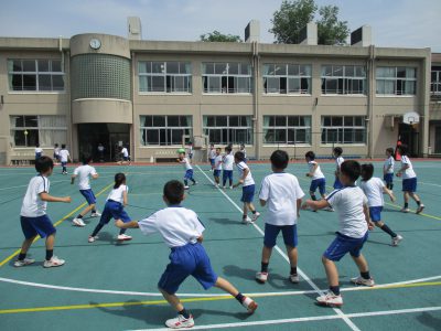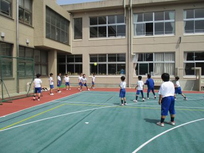 中学年や高学年は、運動場でドッジボールをしたり、ハンドべースをしたりしていました。