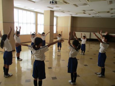 5年生も来てくれて、ラジオ体操を二つ、ヨガ、エアロビクス、歌遊び、そして、いつもの火星人ゲームをしました。