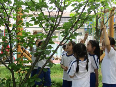 また、「八池の森」では、散策をしたり、さくらんぼを観察したりする様子が見られました。
