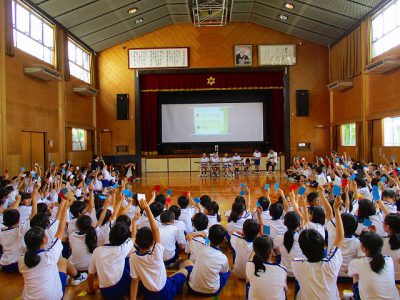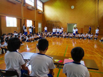 学級において話し合ったことをもとに、全校児童が集う場での意見交流に取り組みました。