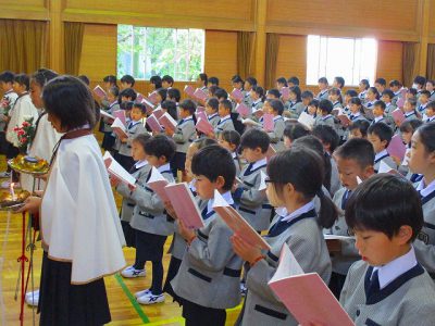 校長先生の法話は「50人の商人とお坊さん」のお話でした。