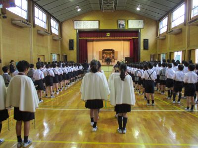 子ども達は、じっと静かに校長先生のお話を聞きました。