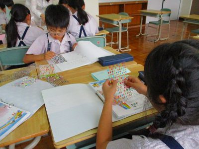 多くの児童が、「アジア子ども絵日記」のグランプリ作品展示を見て、感心していたようです。
