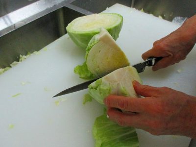 たくさんの野菜を切るために、大きな包丁を使います。