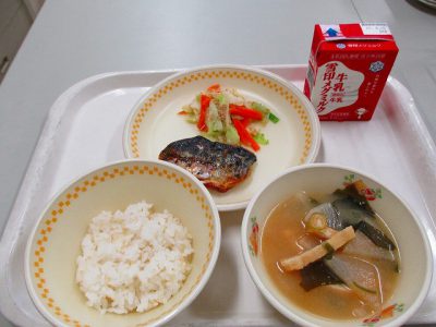 今日の献立は「鯖の塩焼き・キャベツのごまあえ・大根のみそ汁」でした。