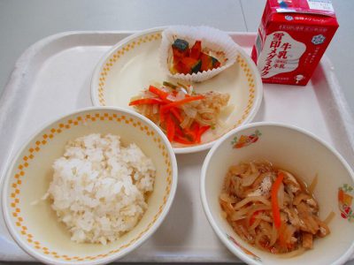 今日の献立は「白身魚の南蛮づけ・かぼちゃのグリル・切り干し大根の煮物」です。
