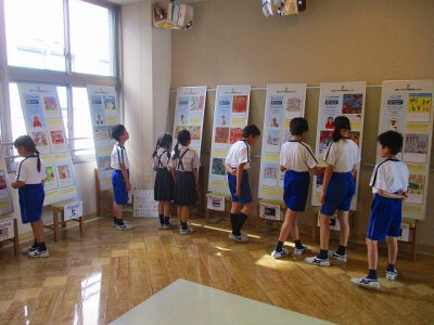 同年齢の児童が描く見事な風景画・人物画に、感銘を受けた文教キッズでした。