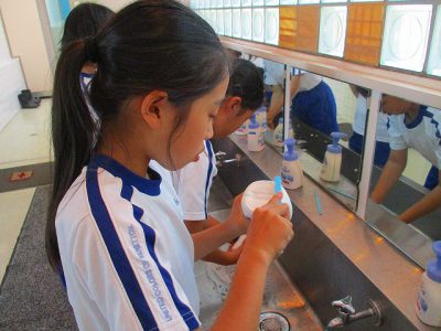今日の委員会活動の時間に、そのハンドソープの容器をキレイにしました。