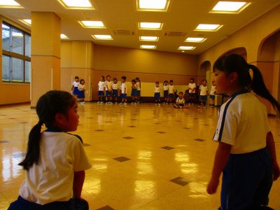 お楽しみは、いつもの「火星人」と、昨日のASEで楽しんだ遊び「阿弥陀様」でした。「ねぇねぇ、"If you are in the 1st grade."って、言おっか?」・・・・二人で相談中です。