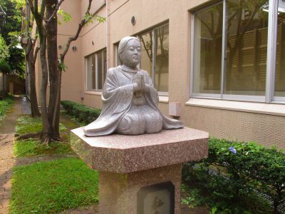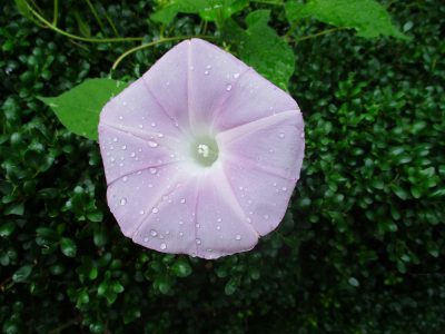 勢至丸様の傍の垣根に、アサガオの花が可憐に咲いていました。