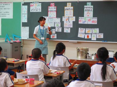 最終日の今日は、実習生のみなさんに10分程の食育をしてもらいました。