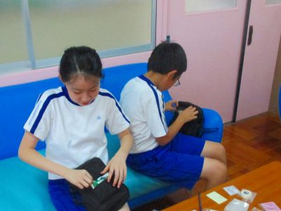 採点の仕方を確認して、新しくなった得点版の色塗りの作業をしました!