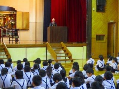 子ども達は、し~ん・・・と物音一つさせず、静かに、真剣に、校長先生のお話を聞き入っていました。