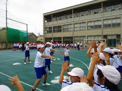 1時間目に、入場行進や開会式などの隊形、エール交換練習、玉入れの隊形を。