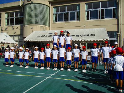 応援席の低学年が