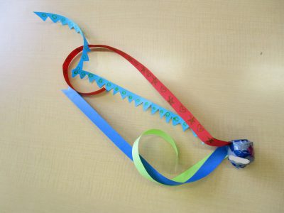 新聞紙を細ーく、長ーく切ることから始まりました。
