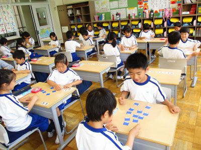 今日は「10の分解・合成」の習得を目指して、ペアで「10作りのカードゲーム」をしました。