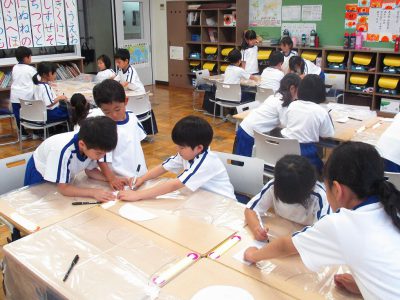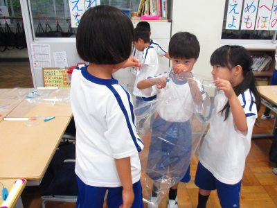 今日の生活科の時間は、レインコート作りをしました。