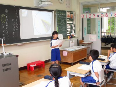 発表する人は、後ろのお友達まで届く声で話すことをめあてにしています。