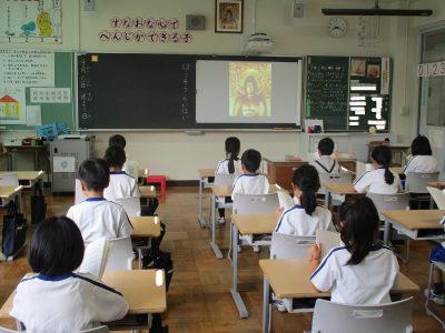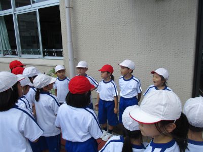 体操服に着替えて、教室で校長先生のお話を聞きました。