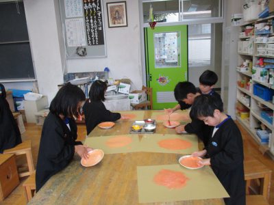 顔の形が仕上がった後は、手形をつけて乾かしました。